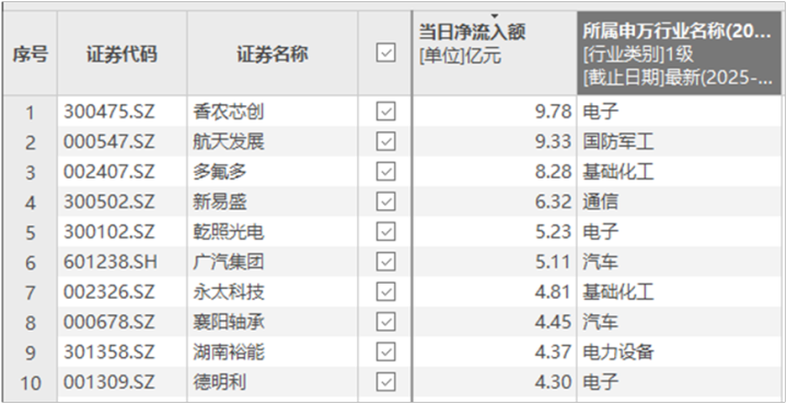 上证报中国证券网讯(记者徐蔚)Choice数据显示,11月28日,当日资金净流入额排名前个股包括香农芯创、航天发展、多氟多、新易盛、乾照光电、广汽集团、永太科技、襄阳轴承、湖南裕能、德明利等,净流入额在4亿元至10亿元不等。其中,香农芯创、乾照光电、德明利属于电子行业。